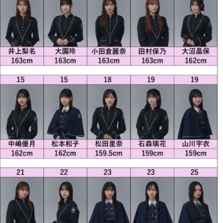 櫻坂46 【櫻坂46】メンバー身長順 櫻坂46メンバー33名を身長順に並べてみました。【乃木坂46】メンバー身長順はコチラ【日向坂46】メンバー身長順はコチラ【平均身長】メンバー(33名)平均:160.5cm・2期生(13名)平均:160.4cm・3期生(11名)平均:160.... 2025.10.01 櫻坂46櫻坂46 身長順