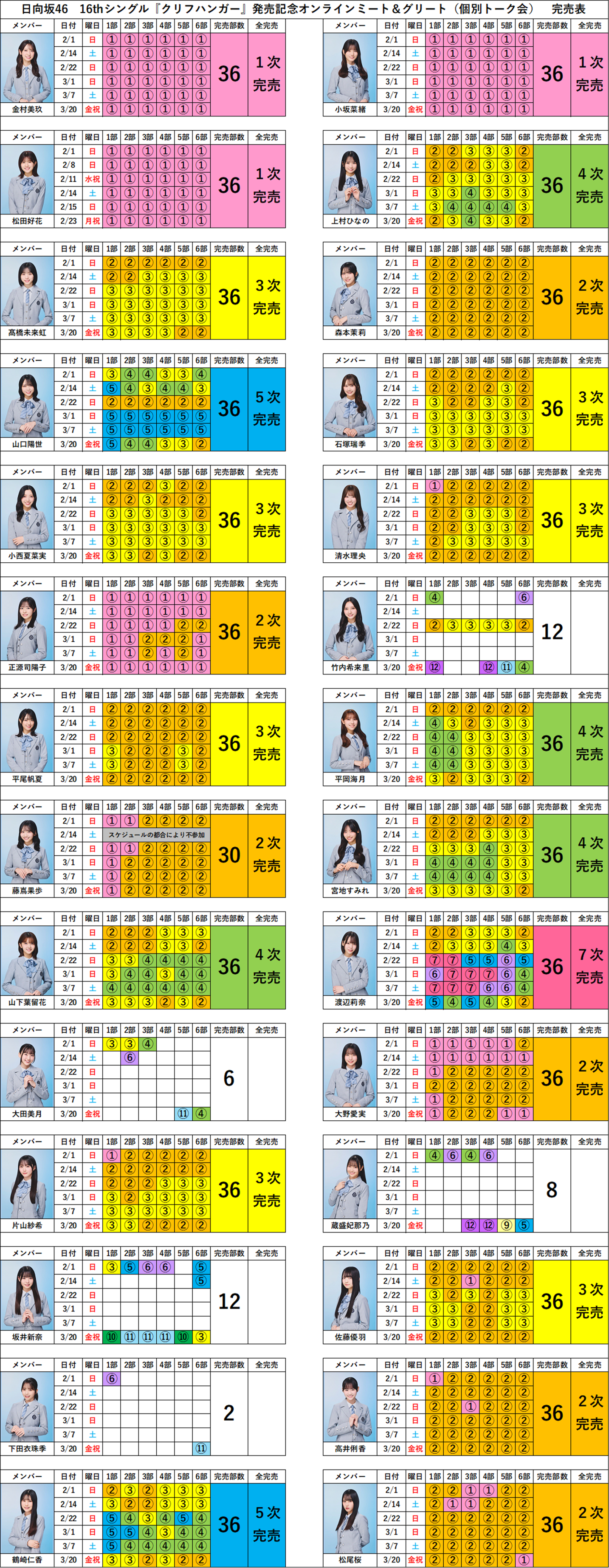 この記事では、日向坂46 16hシングル『クリフハンガー』発売記念オンラインミート&グリート(個別トーク会)完売状況をまとめています。