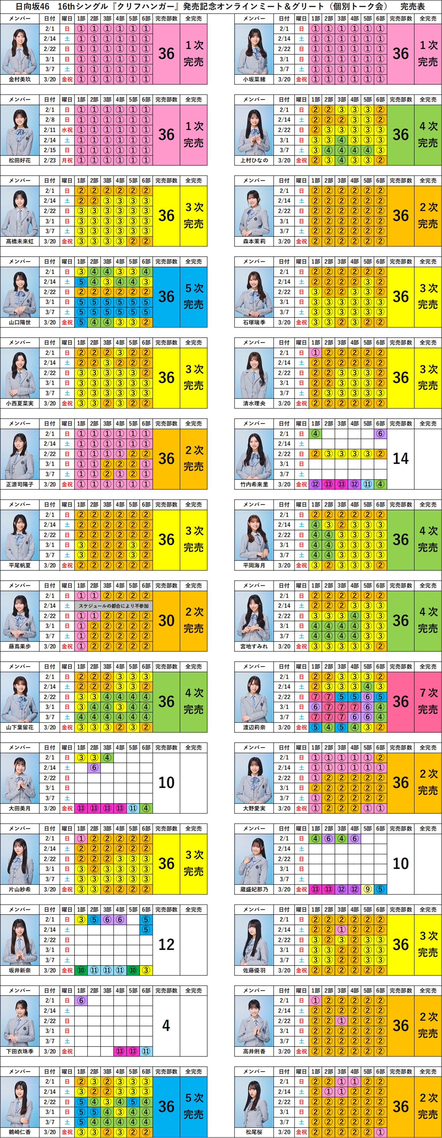 この記事では、日向坂46 16hシングル『クリフハンガー』発売記念オンラインミート&グリート(個別トーク会)完売状況をまとめています。
