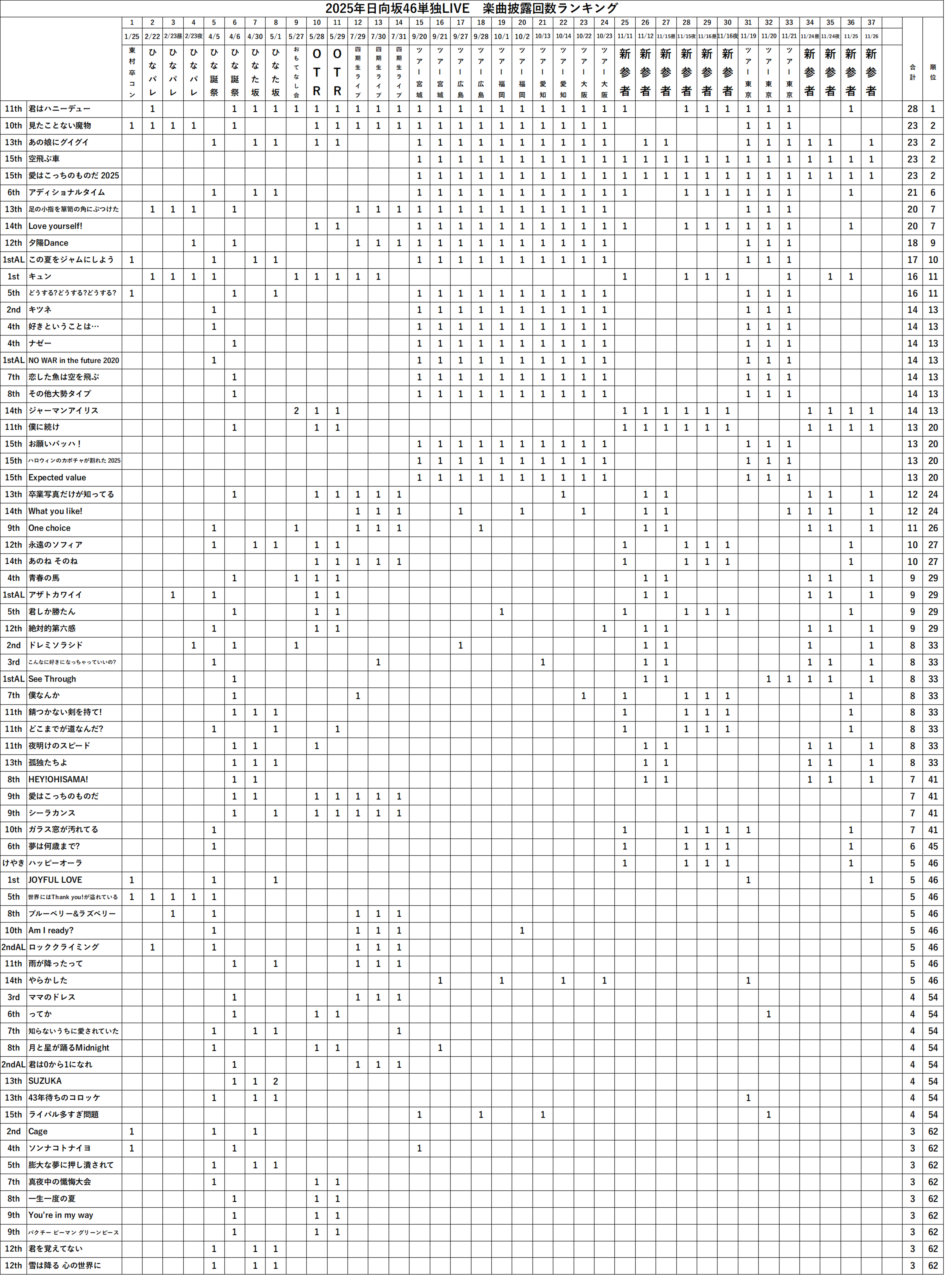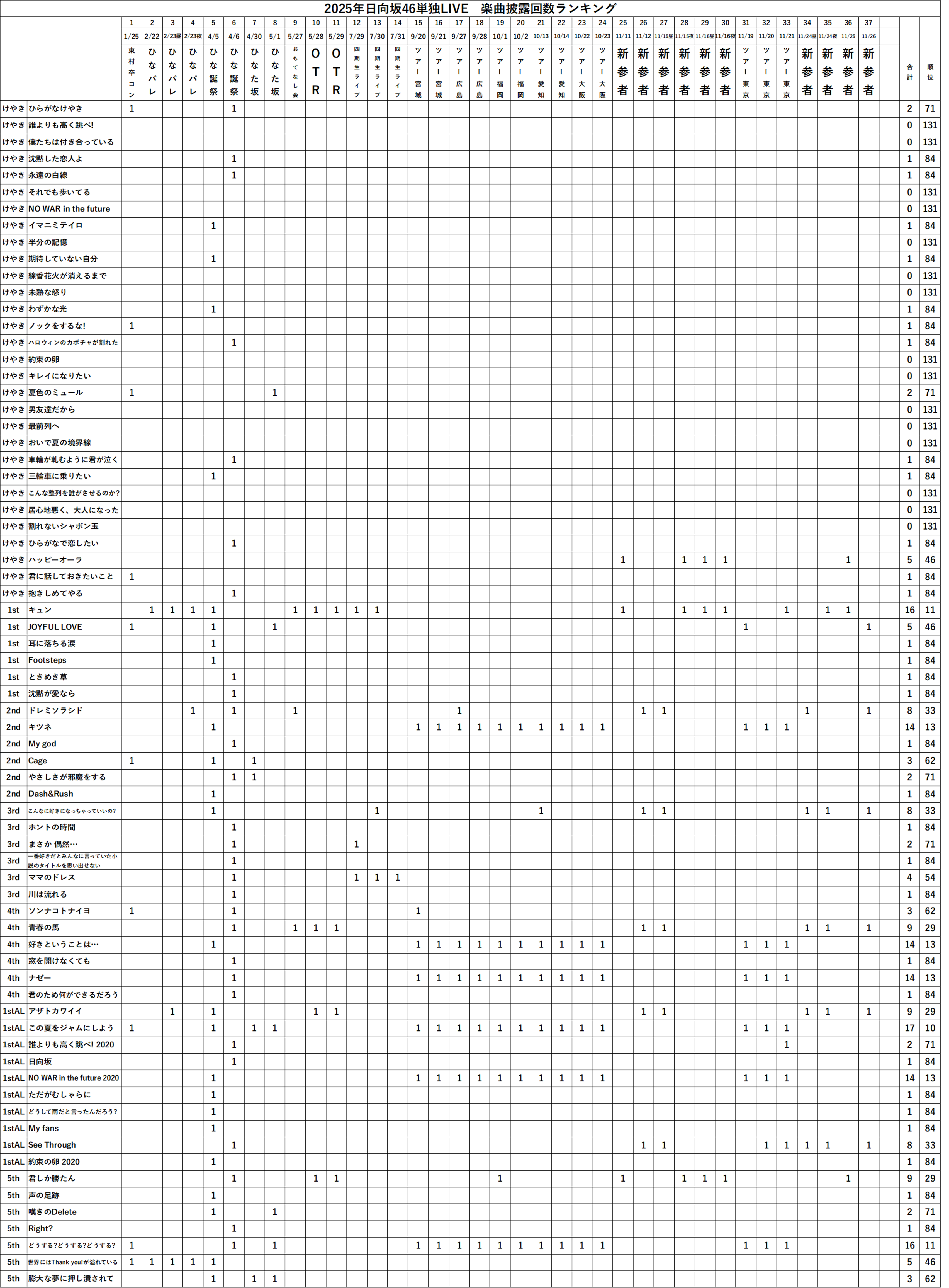 2025年単独LIVE 披露曲回数ランキング(確定版)はこちらになりました!