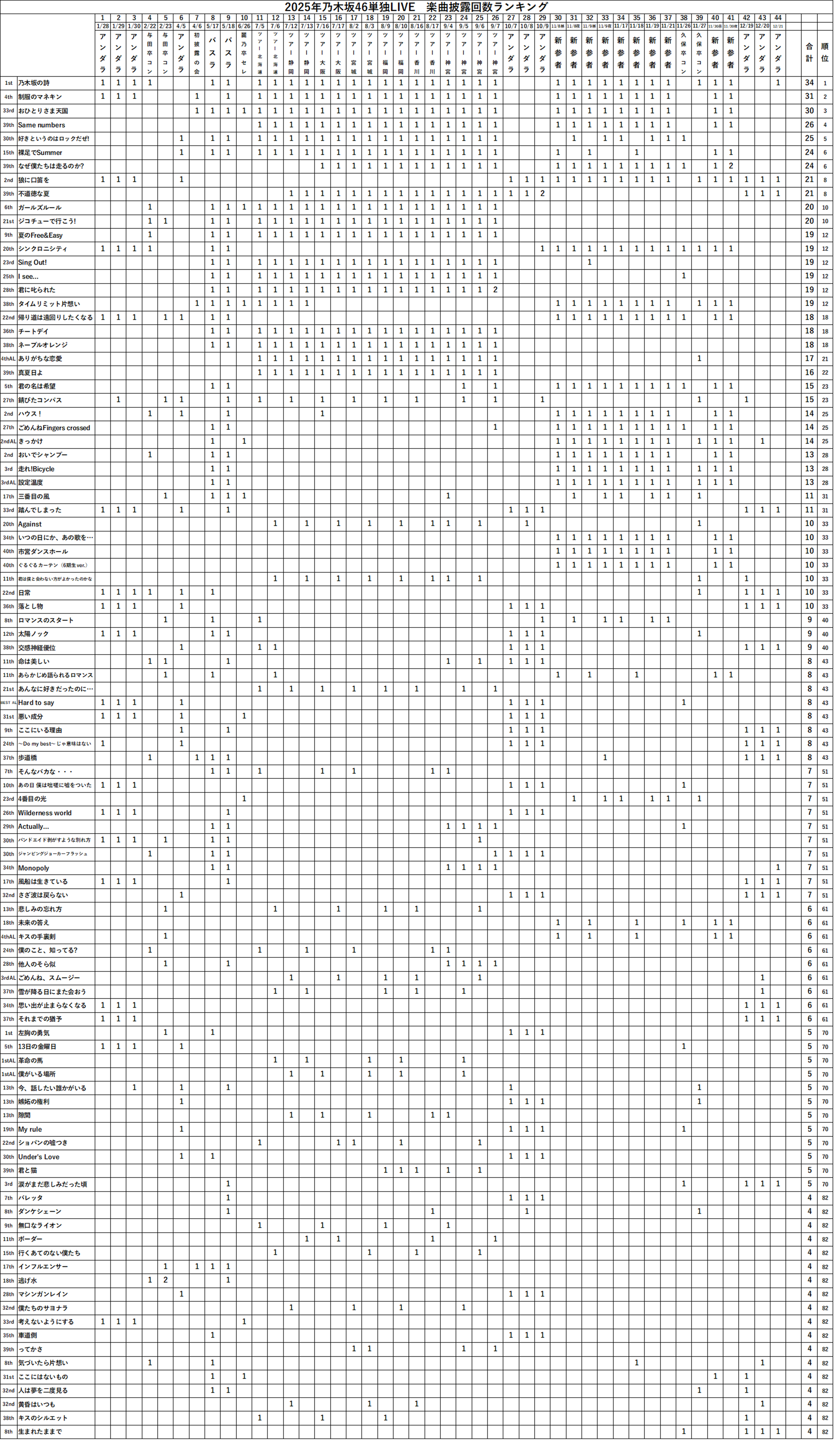 2025年単独LIVE 披露曲回数ランキング(確定版)はこちらになりました!