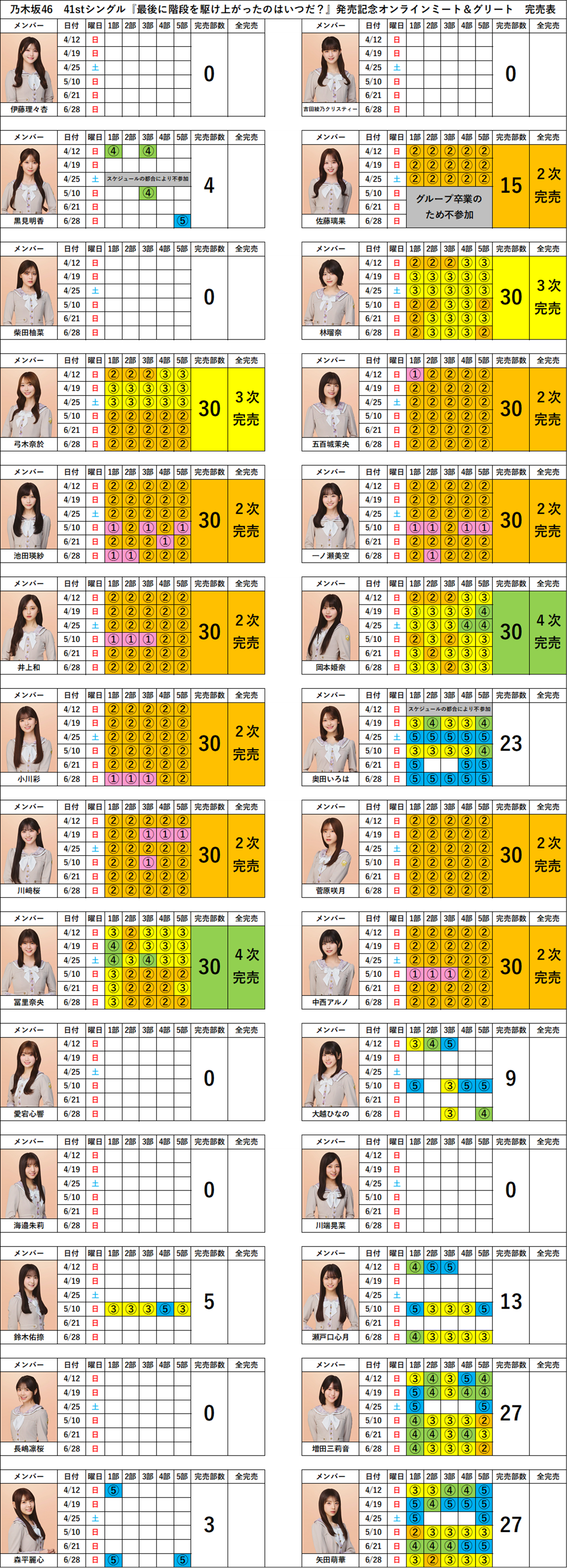 【乃木坂46ミーグリ完売表】41st「最後に階段を駆け上がったのはいつだ?」発売記念オンラインミート&グリート完売表(第5次受付)