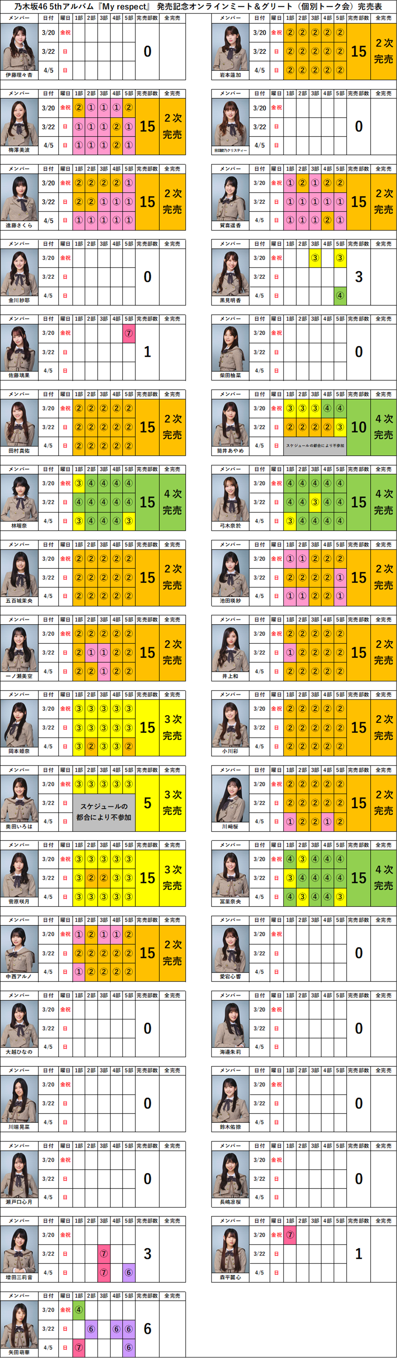 この記事では、乃木坂46 5thアルバム「My respect」オンラインミート&グリート(ミーグリ)完売状況をまとめています。