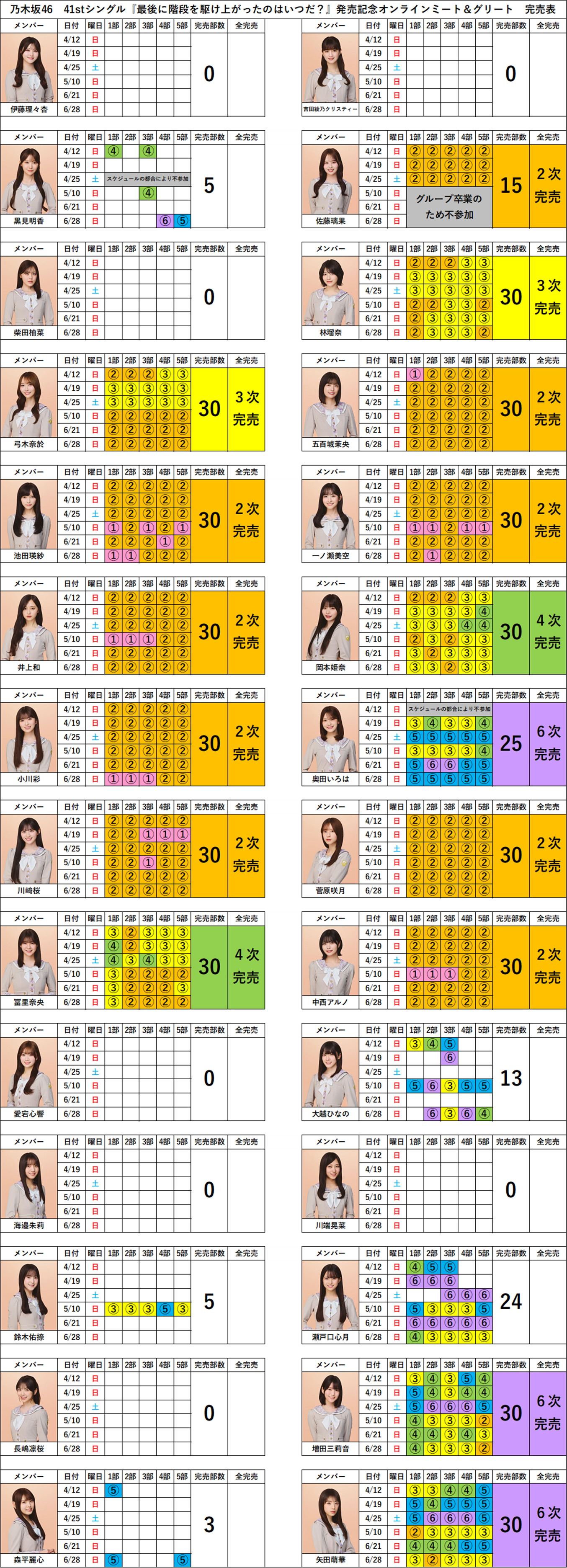 【乃木坂46ミーグリ完売表】41st「最後に階段を駆け上がったのはいつだ?」発売記念オンラインミート&グリート完売表(第5次受付)《4/9更新・最新版》