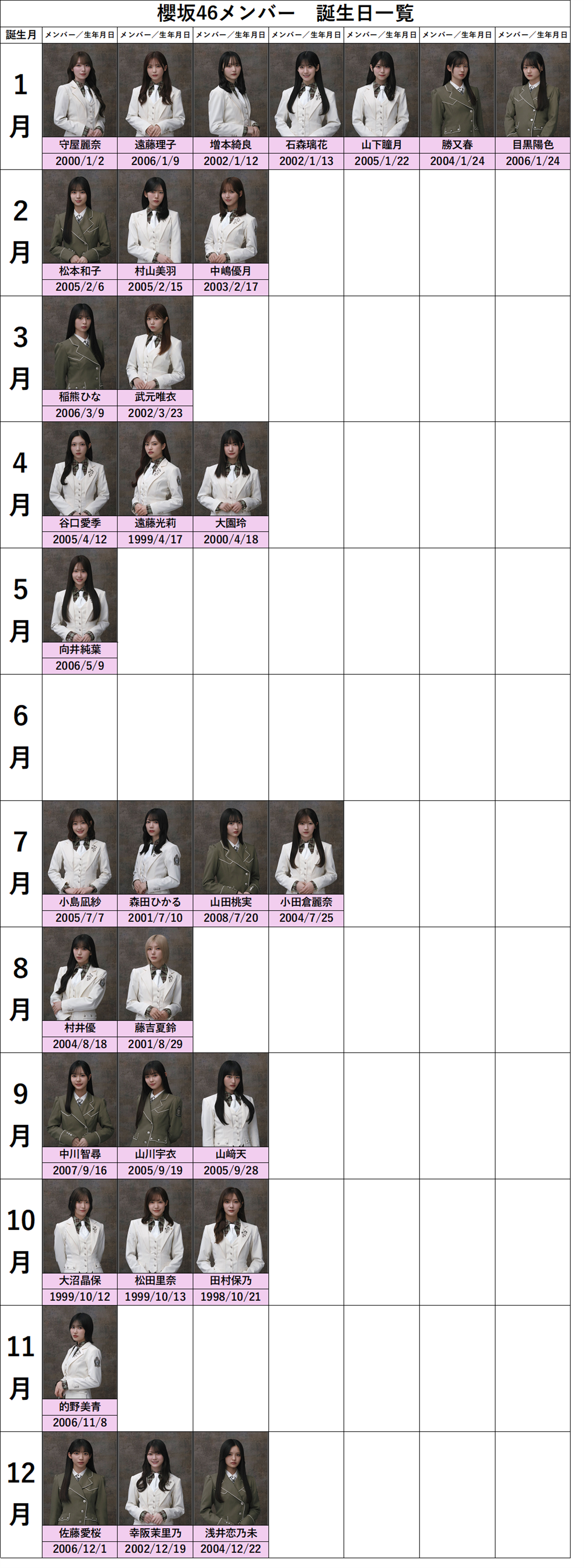 櫻坂46メンバー32名の誕生日の一覧です。