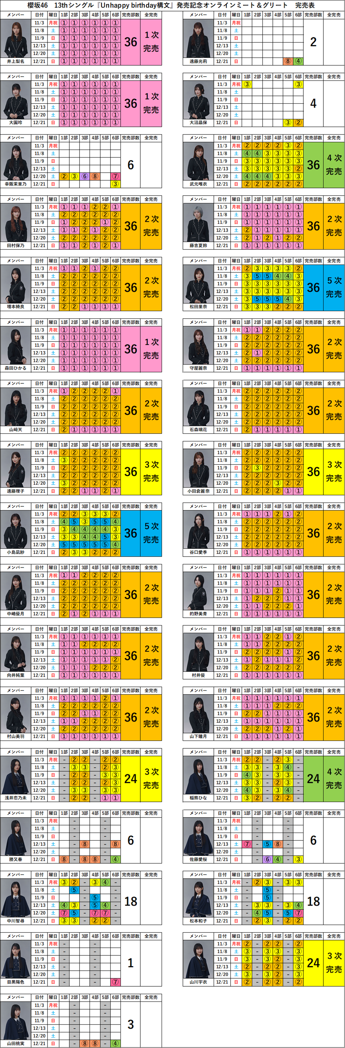 【櫻坂46ミーグリ完売表】13thシングル『Unhappy birthday構文』発売記念オンラインミート&グリート完売表(第8次受付)