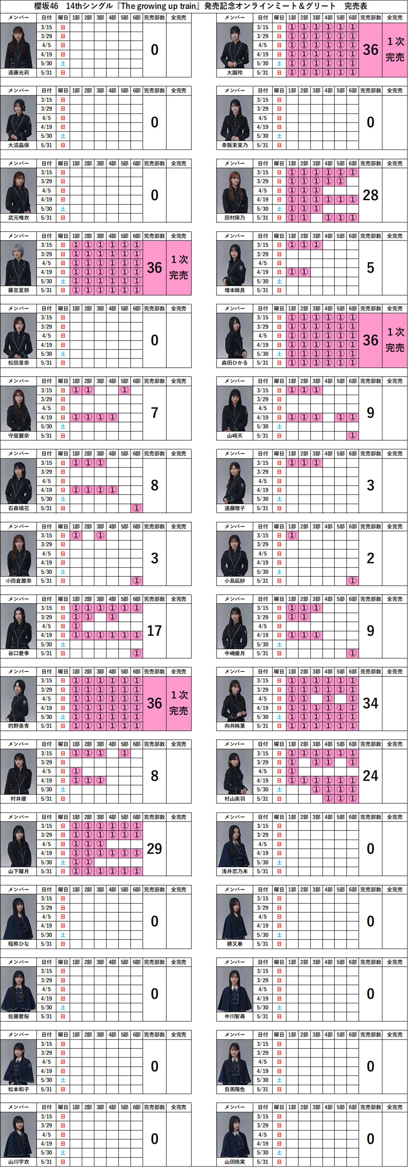 この記事では、櫻坂46 14thシングル『The growing up train』オンラインミート&グリート(ミーグリ)完売状況をまとめています。
