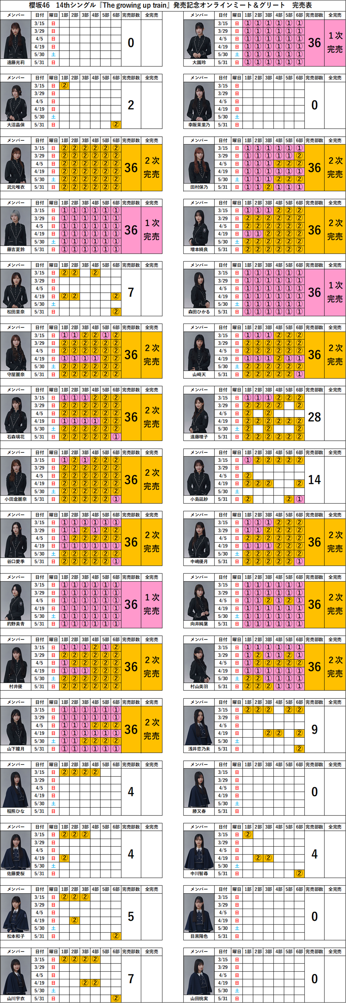 この記事では、櫻坂46 14thシングル『The growing up train』オンラインミート&グリート(ミーグリ)完売状況をまとめています。