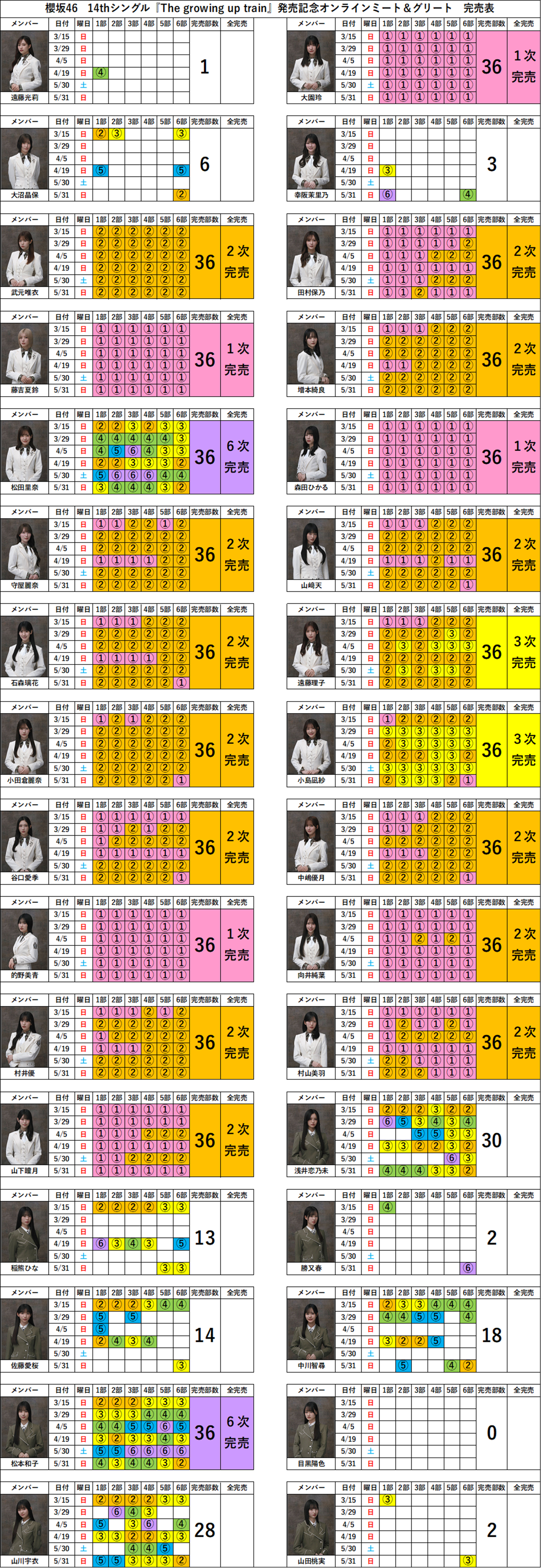 【櫻坂46ミーグリ完売表】14th『The growing up train』発売記念オンラインミート&グリート完売表(第6次受付)