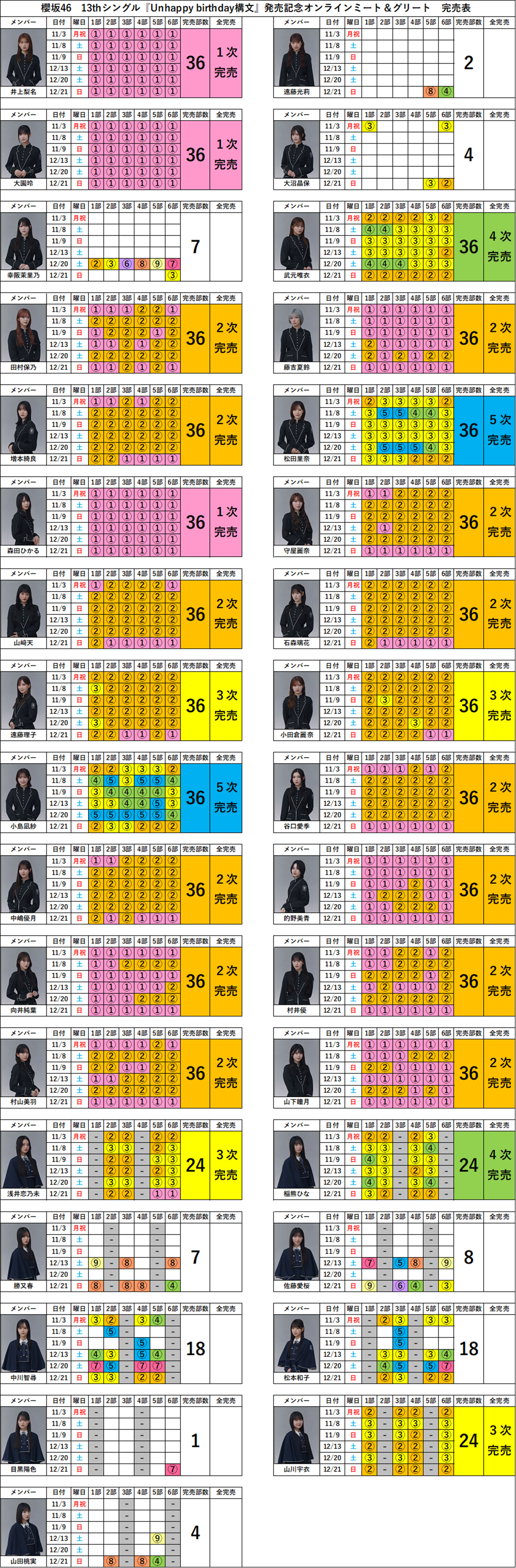 この記事では、櫻坂46 13thシングル『Unhappy birthday構文』オンラインミート&グリート(ミーグリ)完売状況をまとめています。